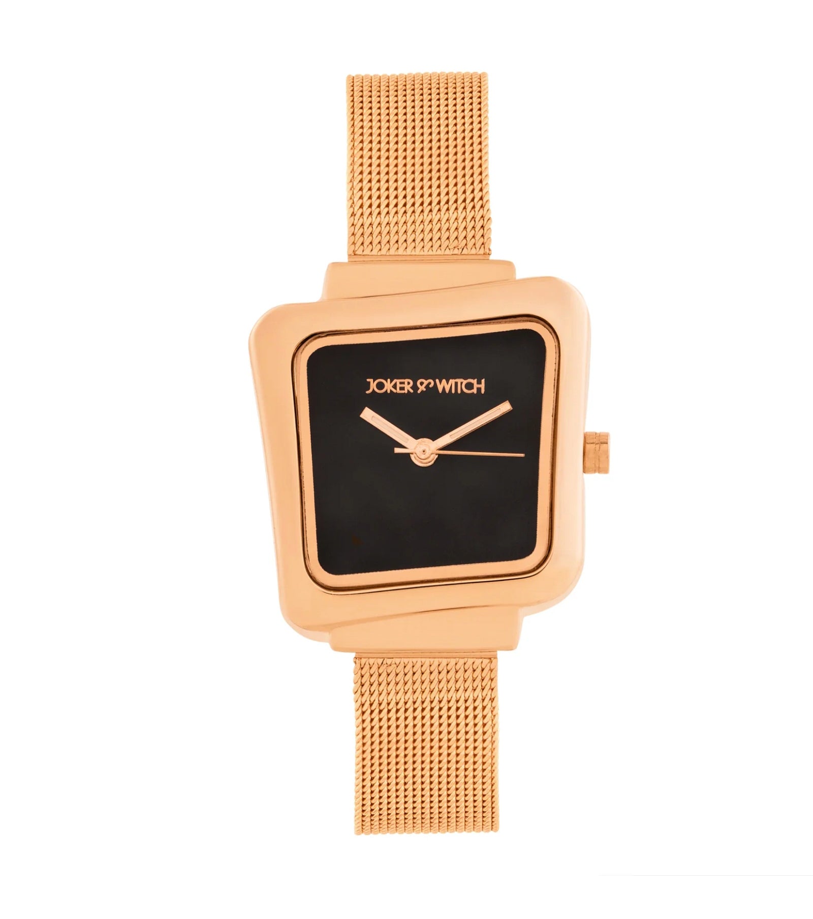 REGALIA ROSE GOLD WATCH WITH A BLACK DIAL AND A MESH STRAP