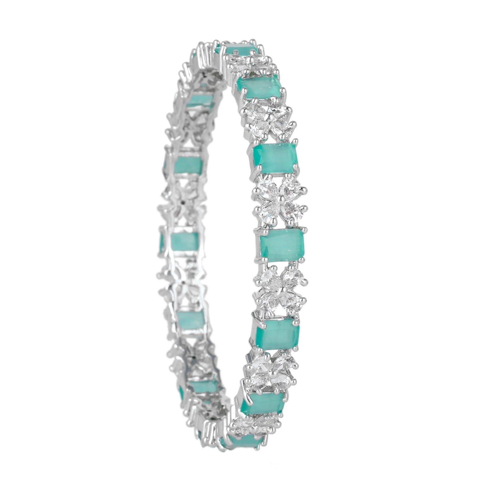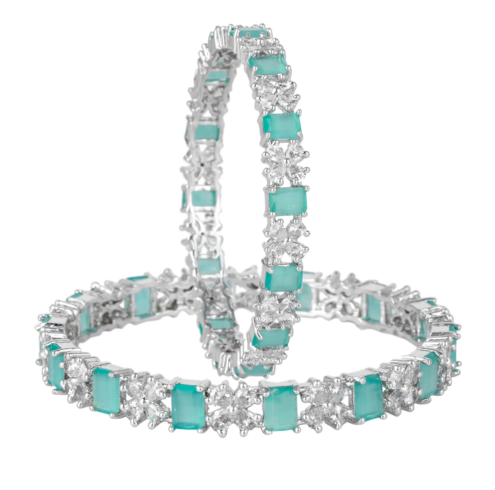 Estele Rhodium Plated Gleaming Mint Green American Diamond Bangles Available in 2:4, 2:6, & 2:8 Sizes|Dazzling Touch of Elegance for Women
